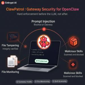 BOSTON, MA, UNITED STATES, April 16, 2026 /EINPresswire.com/ -- Enkrypt AI, named a Gartner Cool Vendor in AI Security 2025, today announced the general availability of ClawPatrol, a security plugin for the OpenClaw agent ecosystem that delivers gateway-level enforcement, autonomous skill scanning, and semantic file integrity monitoring. ClawPatrol addresses a critical gap in AI agent security: the failure of LLM-dependent defenses when the model itself is under attack.